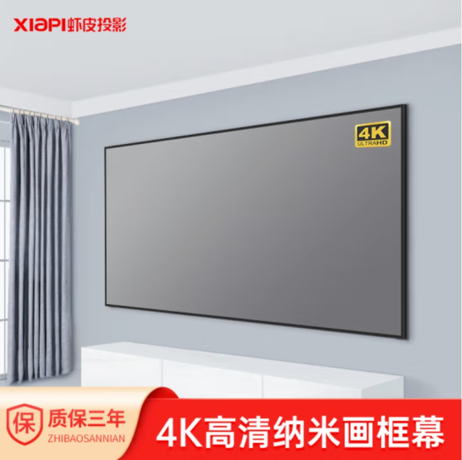 虾皮 高清窄边画框投影幕布卧室客厅4k抗光布幕布家用贴墙壁挂投影仪3D家庭影院激光电视可用电影幕 白玻纤 1cm边框100英寸超窄边框画框幕